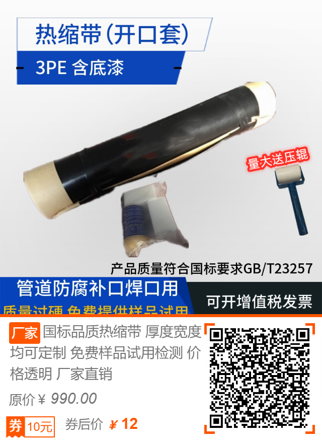 防紫外線熱收縮帶具備了防水、防老化、不固化、不開裂,長期不出現(xiàn)移動(dòng)、不剝離等優(yōu)良特點(diǎn),從而達(dá)到了防腐蝕能力強(qiáng),外形美觀的效果,產(chǎn)品經(jīng)實(shí)踐驗(yàn)證是一種優(yōu)而美的防腐佳品。 對于長期暴露在空氣和陽光中的地上跨越管線和樓前引入管道,由于其總是處于雨淋日曬的環(huán)境中,一般的防腐層經(jīng)過一定的時(shí)間后,就會(huì)老化、脫落, 終導(dǎo)致管道腐蝕。防紫外線熱收縮帶正是為了適應(yīng)這一需要,集“防紫外線”和“防腐”的功能為一體,簡單、經(jīng)濟(jì)而又有效地解決了其他防腐材料所無法克服的難題。